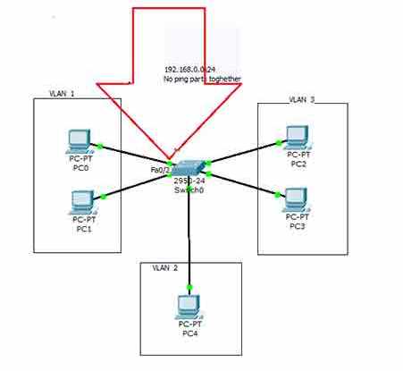 مثال اول:ایجاد یک شبکه LAN بر اساس 192.168.0.0/24 متشکل از 3 قسمت که همدیگر را پینگ نمی کنند.