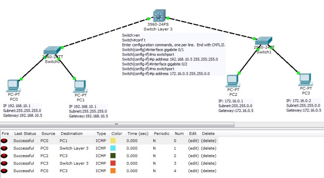 مثال دوم : طراحی دو شبکه کاملا مستقل از نطر رنج IP و متصل بهم با استفاده از سوئیچ لایه 3